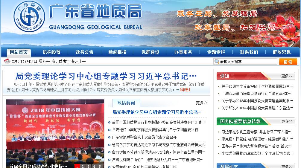 广东省地质局成立于1956年10月,由当时的中南地质局所属广东省境内地质队伍组建地质部广东省地质局,1958年5月改为省部双重领导的广东省地质局,文革期间曾多次......