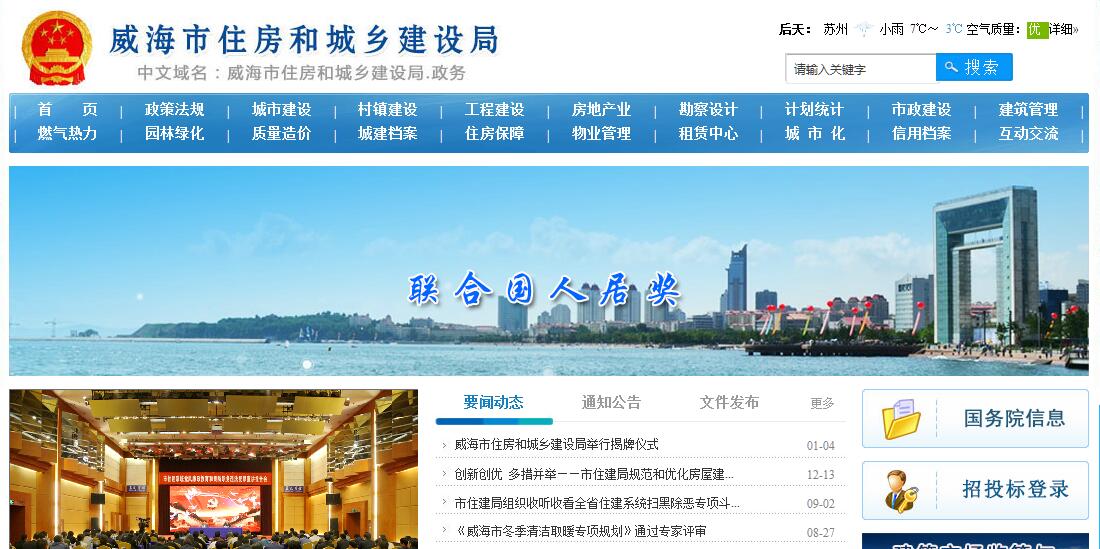 威海市住房和城乡建设局主要职责:1.贯彻执行国家和省有关建设工作的方针政策和法律法规;起草城乡建设规范性文件草案,拟订全市城乡建设发展规划并组织实施;负责全市城......