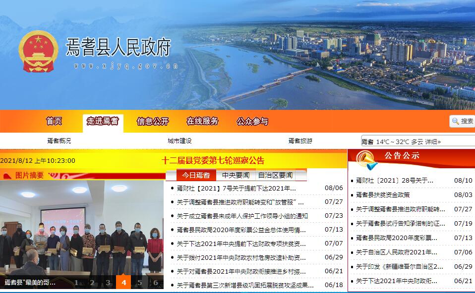 且末县人民政府官方门户网站。