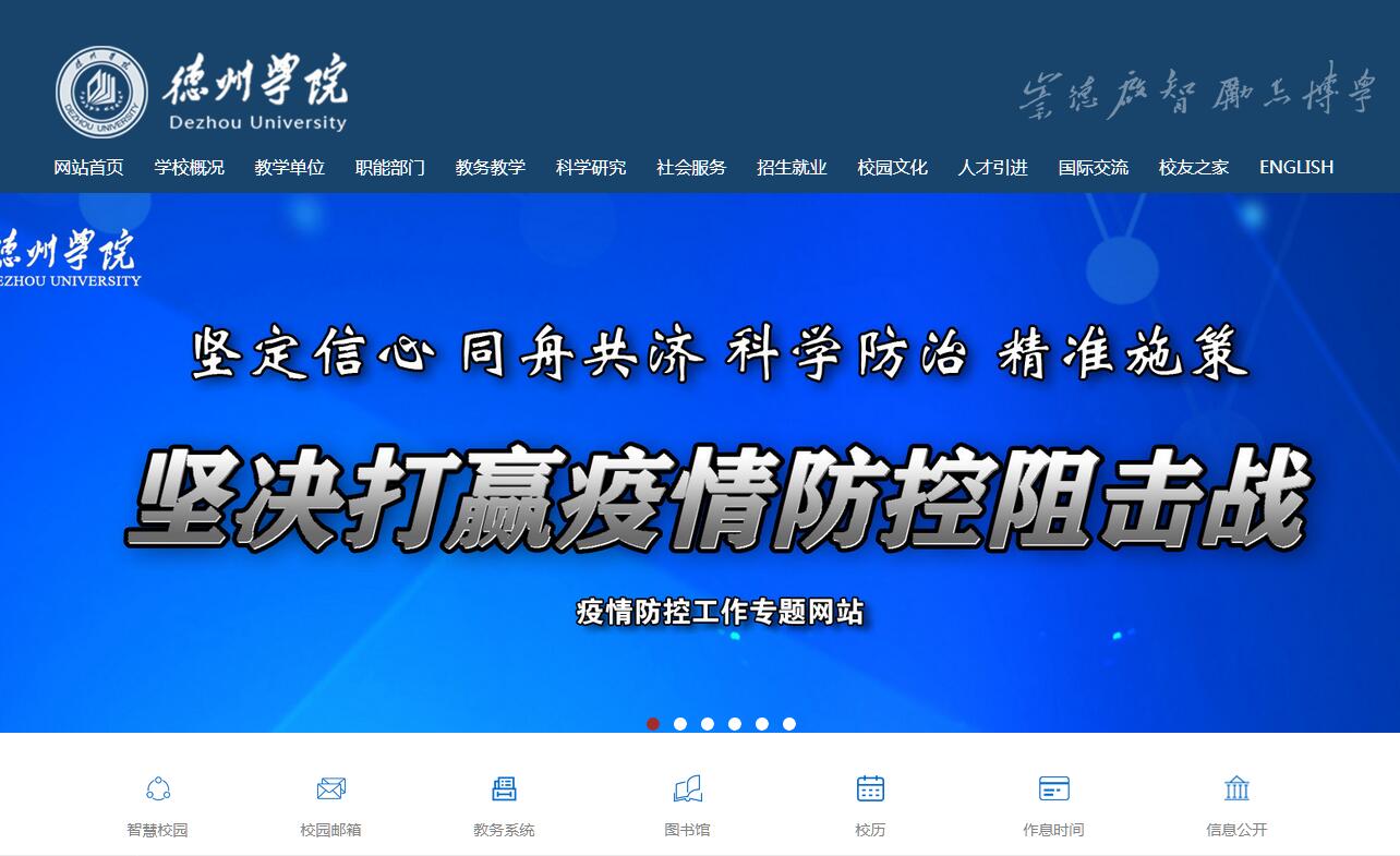 德州学院是一所山东省和德州市共建、以省管理为主的全日制综合性普通本科院校。建校40多年来,学校植根齐鲁文化与燕赵文化之沃土,汲取黄河文化与运河文化之灵韵,秉承艰苦创业与励志育人之精神,不断谱写教书育人、创新发展的新篇章。学校座落在素有“神京门户”、“九达天衢”之称和纳入国家京津冀协同发展战略的德州市。德州历史源远流长,是龙山文化的发祥地之一,留有大禹治水、董子读书台、刘备署理平原县、明清运河故道、苏禄国王墓等历史文化古迹,涌现出董仲舒、东方朔、祢衡、窦建德、颜真卿、邢侗、任继愈等一大批历史文化名人。德州是国家交通运输主枢纽城市,京沪高铁等线路的开通,更是将德州全面融入首都一小时生活圈和省会半小时生活圈,南水北调工程将使古老运河重新发挥重要作用。中共中央、国务院正式印发的《京津冀协同发展规划纲要》,明确提出“支持山东德州建设京津冀产业承接、科技成果转化、优质农产品供应、劳动力输送基地和京津冀南部重要生态功能区”。德州作为山东省唯一全域纳入规划的城市,“一区四基地”战略地位正式确立。德州拥有“中国太阳城”、“中国功能糖城”、“中国中央空调城”、“中国粮油食品城”、“中国汽车零部件产业城”、“中国优秀旅游城市”、“国家卫生城市”等城市名片,被命名为“生物产业国家高技术产业基地”、“国家火炬计划新能源产业基地”和“国家可再生能源建筑应用示范城市”,“一圈一带一区”全部或部分覆盖德州市,承担着国家新型城镇化试点、现代农业示范区等52项国家和省级改革试点任务,丰厚的地域资源为高等教育的发展提供了广阔的空间。学校始建于1971年,历经德州师范专科学校、德州高等专科学校、德州学院三个时期。1971年5月,德州师范专科学校在“文革”中诞生,经历了启程的步履维艰,在规范和超越之中不断发展壮大。1997年3月,德州师范专科学校、德州教育学院、德州市直业余大学三校合并办学,组建德州高等专科学校,开启了综合性办学之路。1999年以来,又先后并入了5所职业院校,应用型的办学特色更加凸显。2000年3月,经教育部批准,成立本科层次的德州学院,标志着学校从普通专科学校向综合性普通本科大学的历史性跨越,成为德州高等教育发展史上一个重要的里程碑。2006年11月,在全国同类院校中首批、全省同类院校中率先通过教育部本科教学工作水平评估。2009年9月,被山东省教育厅和省人民政府学位委员会批准为第一批山东省研究生联合培养基地。2016年通过教育部本科教学工作审核评估。2017年获批“十三五”首批山东省研究生教育联合培养基地,被山东省人民政府学位委员会确定为山东省硕士学位授予立项建设单位。学校坚持社会主义办学方向,坚持遵循办学规律、服务区域发展与立足实际相结合,立足地方性、应用型、重特色的办学定位,积极创建服务区域、特色鲜明、优势突出的地方性应用型高水平大学。注重突出学科专业特色,适应区域经济社会发展需要,坚持“校地互动、产教融合、整体优化、协同发展、特色鲜明”的原则,大力发展应用型学科专业和传统文理学科的应用型方向,逐步形成以文理学科为基础、工管学科为主体,以信息技术、能源机械、食品生物、纺织服装、材料化工、经济管理、人文教育为引领的优势专业群。注重人才培养特色,根据国家战略、区域发展、学生需求和学生实际,坚持立德树人,努力培养“实基础、强实践、求创新、宽视野、高素养、重责任”的创新性应用型人才。注重突出地域特色,确立了“扎根德州,面向山东,辐射周边,服务京津冀协同发展、一圈一带等国家和山东省发展战略,努力成为德州及周边区域具有显著影响力的先进技术转移中心、科技服务中心和技术创新基地”服务定位,把学科专业与地方产业相对接,把人才培养与地方需要相对接,加大企业行业共同参与人才培养和学科建设的力度,在服务区域经济社会发展中凸显学校特色。注重突出文化特色,秉承自强不息、厚德载物的民族文化精神,浸润淳朴厚重的区域文化特质,不断发扬艰苦创业、自强不息、励志育人的办学精神,最大限度地发挥师生员工的主观能动性,着力促进学校的改革发展。学校现有71个本科专业,专业设置涵盖了经济学、法学、教育学、文学、艺术学、历史学、理学、工学、农学、医学、管理学11大学科门类,形成了以文、理、工、管为主,多学科相互渗透、协调发展的专业结构和以本科教育为主兼办专科教育、部分重点专业积极发展研究生教育的办学格局。2009年被确定为山东省硕士研究生联合培养基地,与山东师范大学、青岛科技大学等联合招收中国现当代文学、原子和分子物理、微生物学、化学工程等专业的研究生。2017年,获批山东省“十三五”首批硕士研究生联合培养基地,并被山东省人民政府学位委员会确定为山东省硕士学位授予立项建设单位。设有山东省重点实验室1个,省工程实验室1个,省高校重点学科、重点实验室、人文社科研究基地6个,省文化艺术科学重点学科2个。拥有德州市生物制药工程技术研究中心等9个德州市重点实验室(工程技术研究中心、社科研究基地)。现有全日制本专科在校25578人,成人教育在校生13120人,与山东师范大学、青岛科技大学等高校